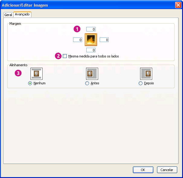 Existe ainda a secção AVANÇADO, que permite editar outras propriedades da imagem, como margens  e alinhamento .