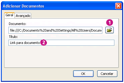 É possível procurar o documento nas pastas  e, de seguida, colocar um título que será apresentado quando o cursor passar sobre o link.