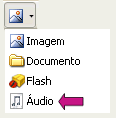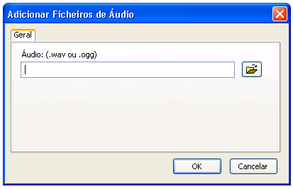 A opção áudio permite pesquisar o ficheiro, em formato .wav ou .ogg, e adicioná-lo ao texto.
